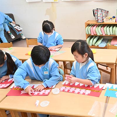 詰め込み式の座学教育ではなく、身近な事柄を活用して様々な体験を通じ、何事にも興味を持って取り組めるようになれます。英語も絵本や歌遊びから始まり、基礎を身につけることが出来ます。