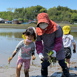 田植えや畑作りを通じ食物の育つ過程や命をいただく大切さを学びます。収穫食材を用いて栄養満点の給食を提供するだけでなく、食事マナーや食文化の伝承にも力を入れています。