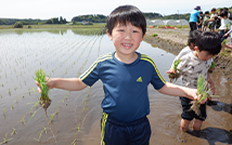 田植えや畑作りを通じ食物の育つ過程や命をいただく大切さを学びます。収穫食材を用いて栄養満点の給食を提供するだけでなく、食事マナーや食文化の伝承にも力を入れています。