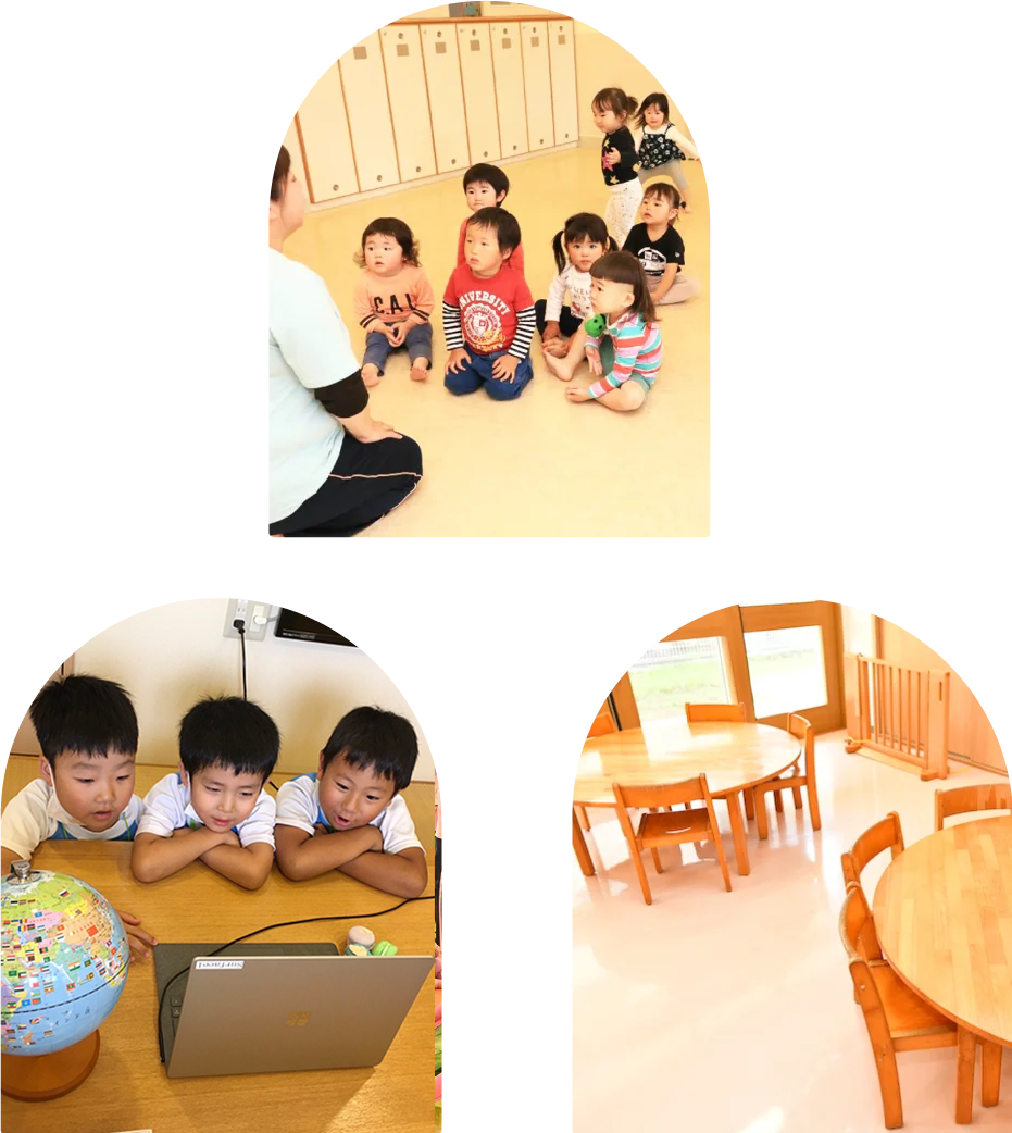 詰め込み式の座学教育ではなく、身近な事柄を活用して様々な体験を通じ、何事にも興味を持って取り組めるようになれます。英語も絵本や歌遊びから始まり、基礎を身につけることが出来ます。